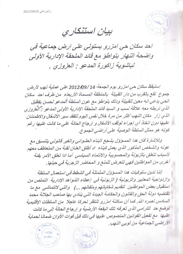 استنكار بخصوص الاستيلاء على اراضي جماعية